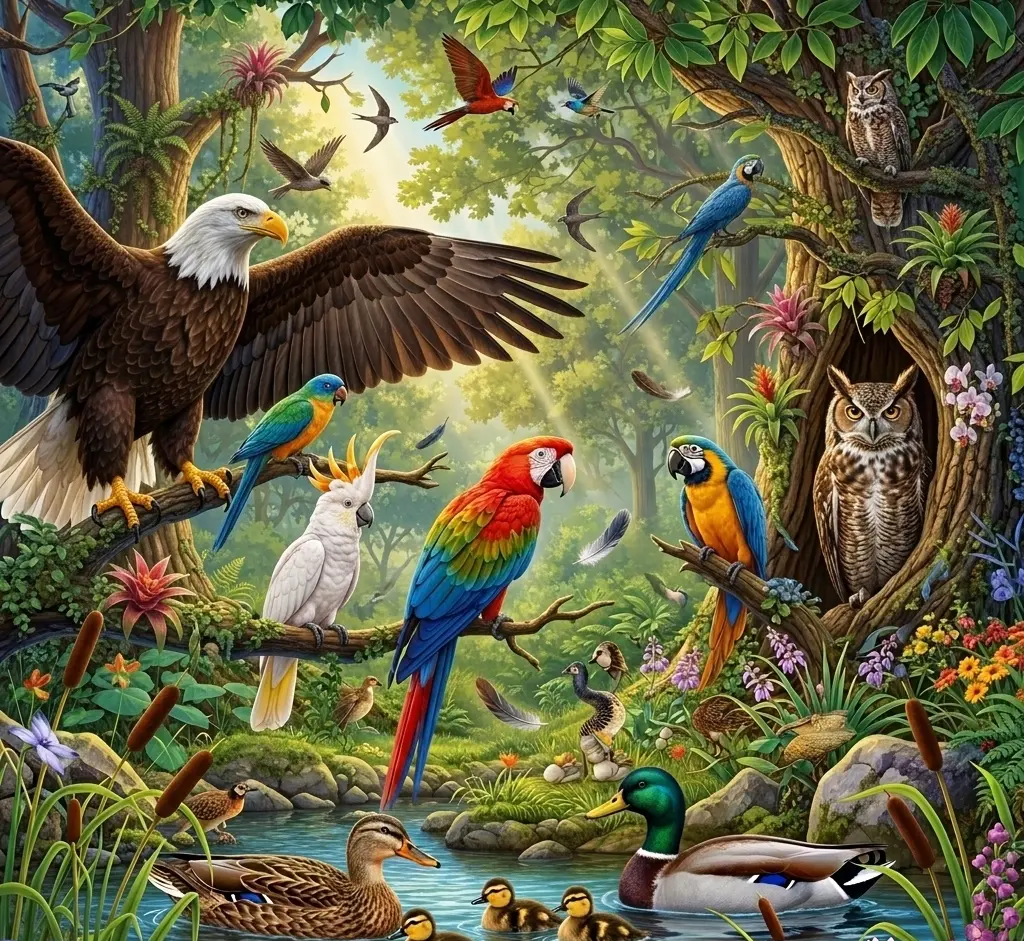 Uçabilen veya kanatları bulunan kuş türleri ve özellikleri.